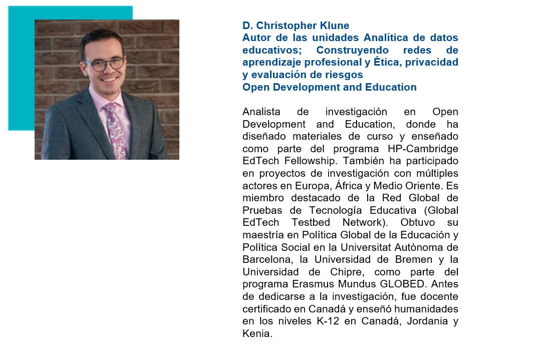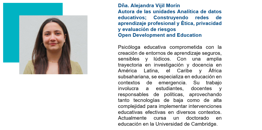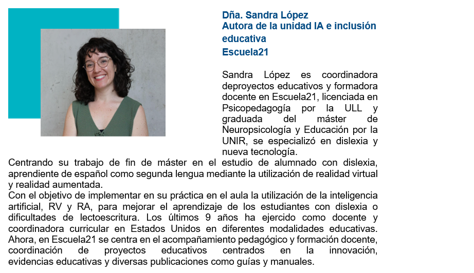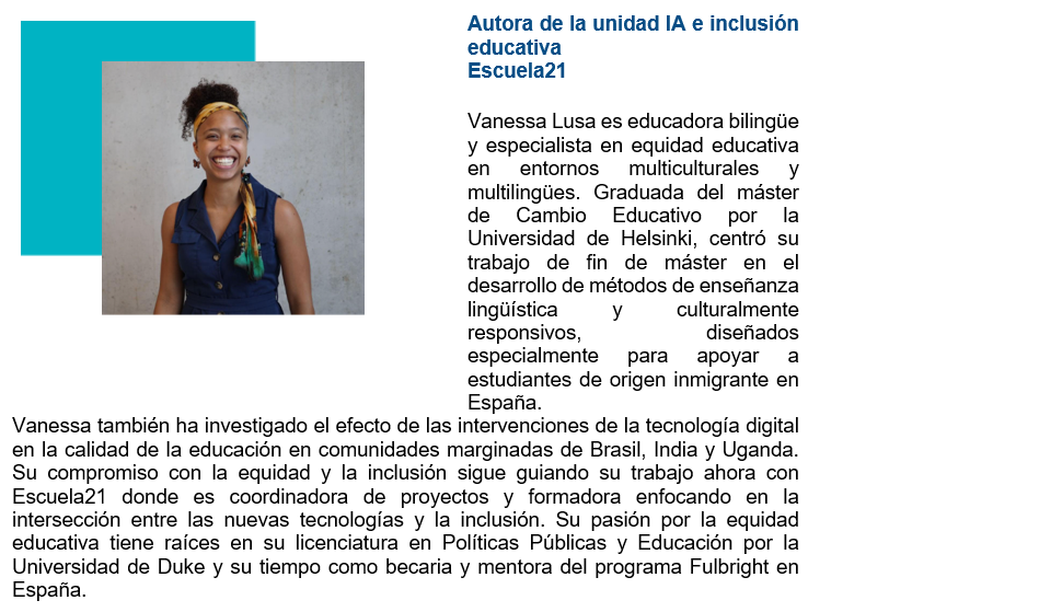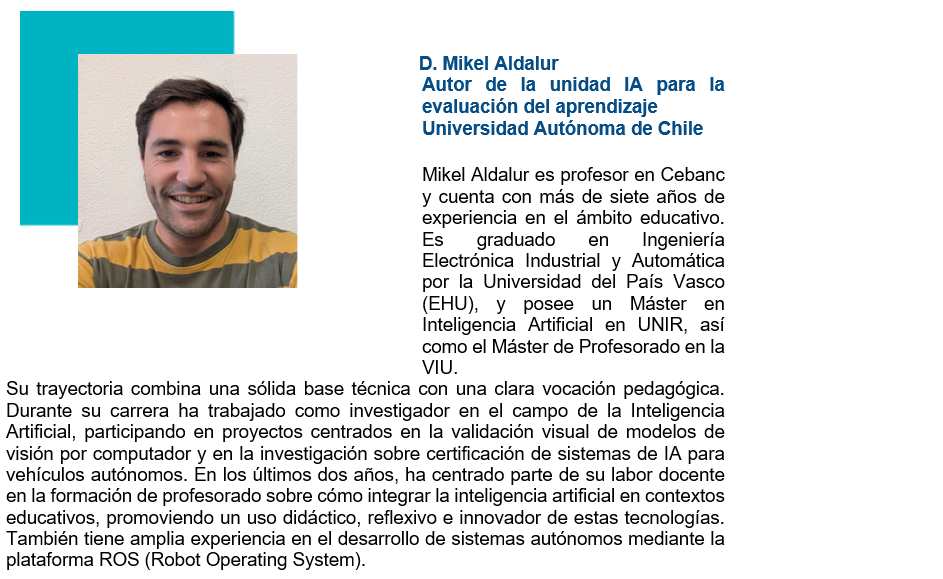 Diseñar experiencias de aprendizaje inclusivas y equitativas integrando herramientas y servicios de IA.Saber utilizar servicios de IA para analizar datos educativos.Saber identificar los riesgos éticos, legales y de privacidad asociados al uso de IA en educación desde una perspectiva crítica e intercultural.