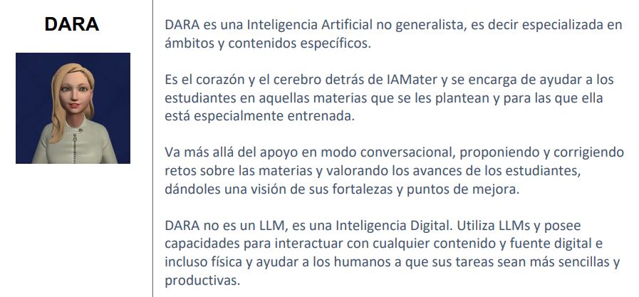 Además de los aspectos tecnológicos, el curso pone el foco en las metodologías activas de enseñanza, el desarrollo de competencias para el aprendizaje duradero, la construcción de redes profesionales y la generación de propuestas que fortalezcan la práctica docente, y que contribuyan a la mejora del bienestar de las personas dedicadas a una profesión que atraviesa una etapa de redefinición.Este curso proporciona además acceso al servicio de tutoría IA Dara. Dara está especialmente entrenada con los contenidos teóricos, los objetivos y las metodologías de aprendizaje del curso. De este modo podremos acompañar el proceso de descubrimiento y experimentación con la IA, y apoyar la incorporación de metodologías que pueden ayudar a aplicar la IA y otras tecnologías a la educación.